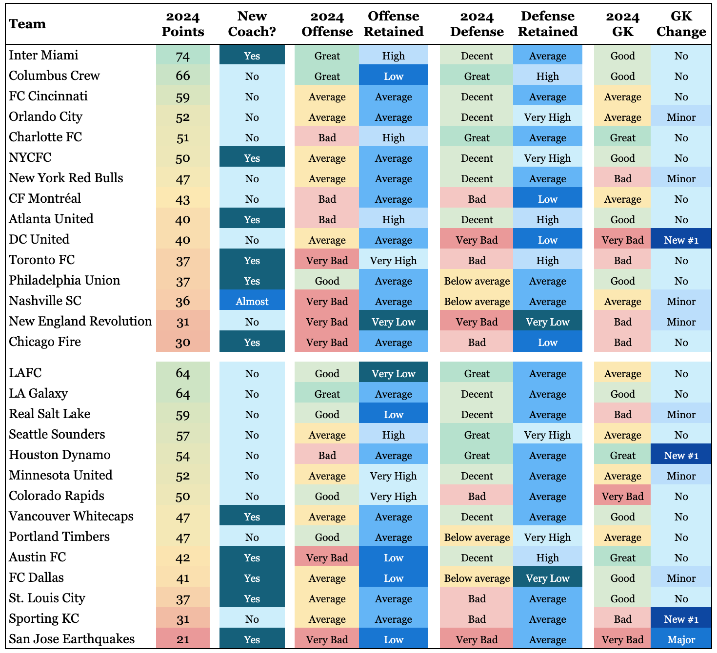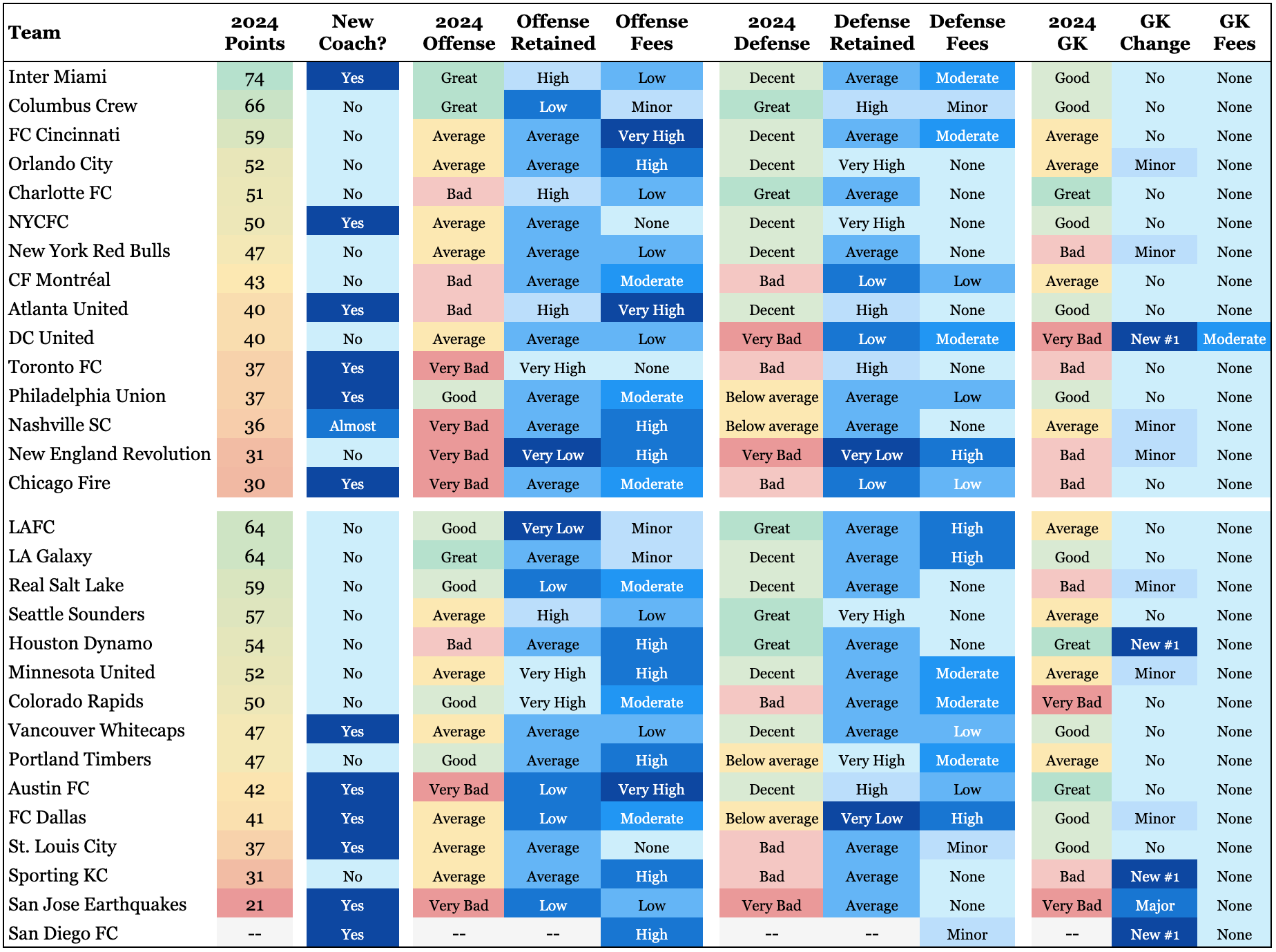 I think this is a good start at seeing how things are changing, but there’s an obvious missing element. Atlanta United is listed as high retention for offense, but we all know there’s big changes in store for their attack.